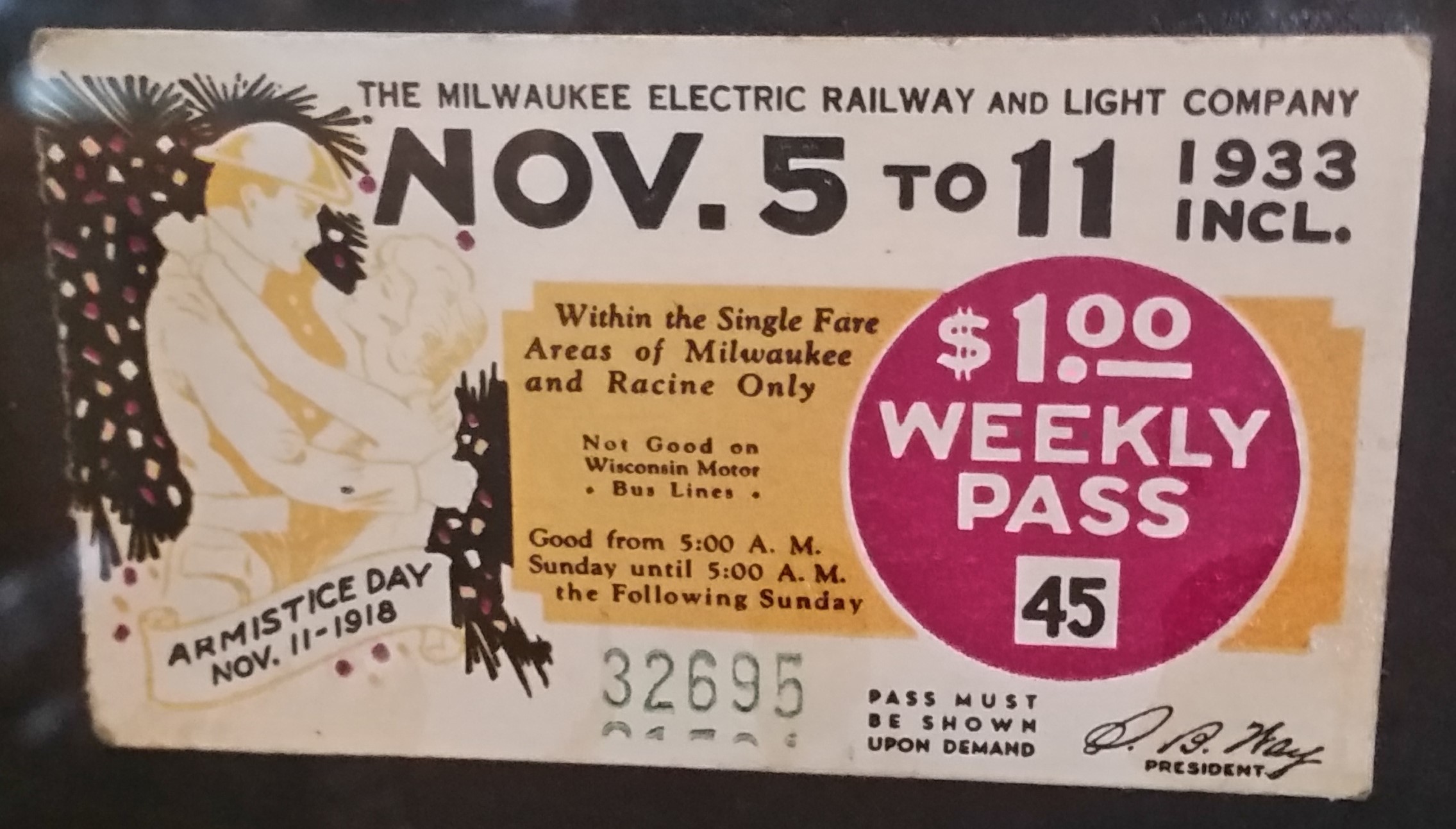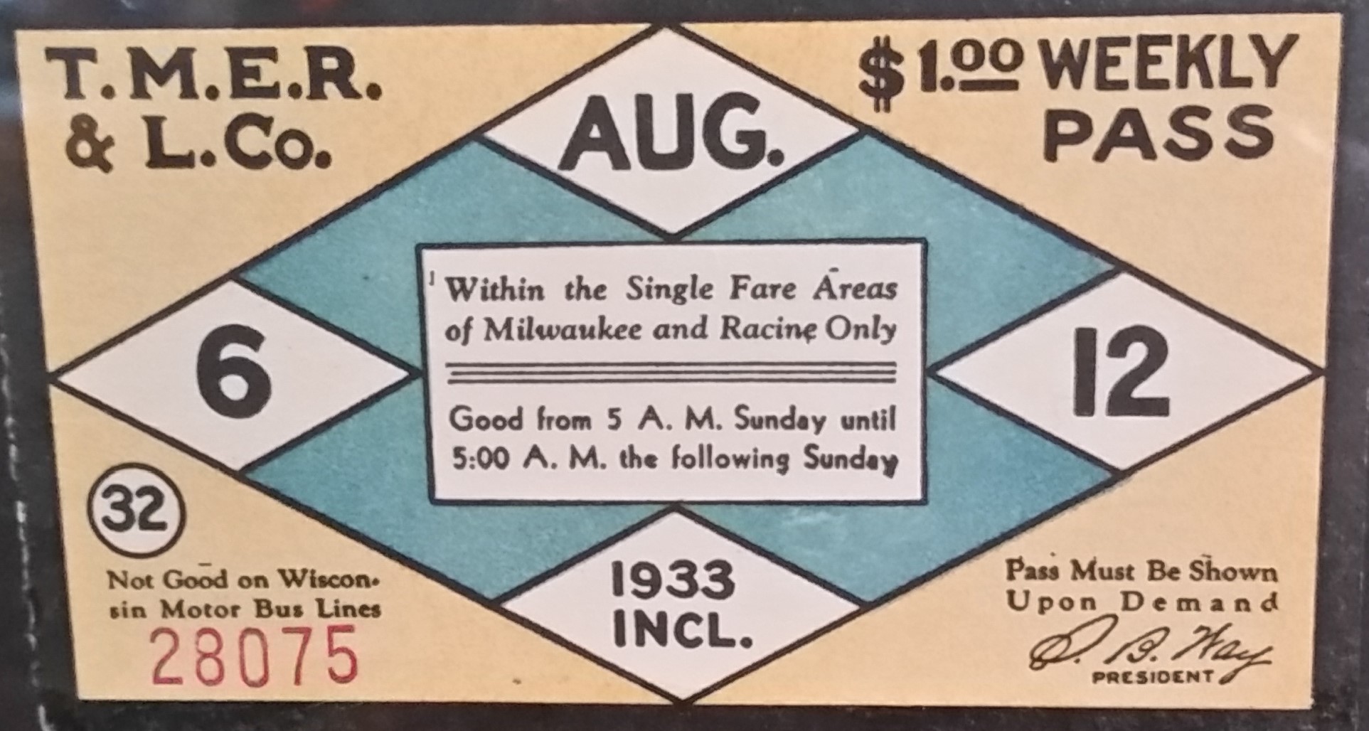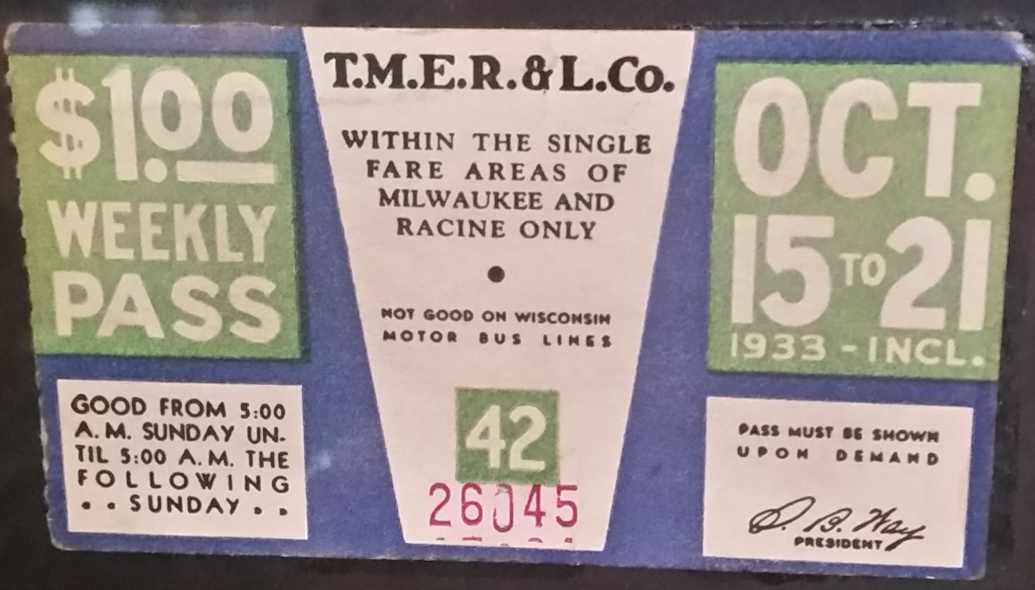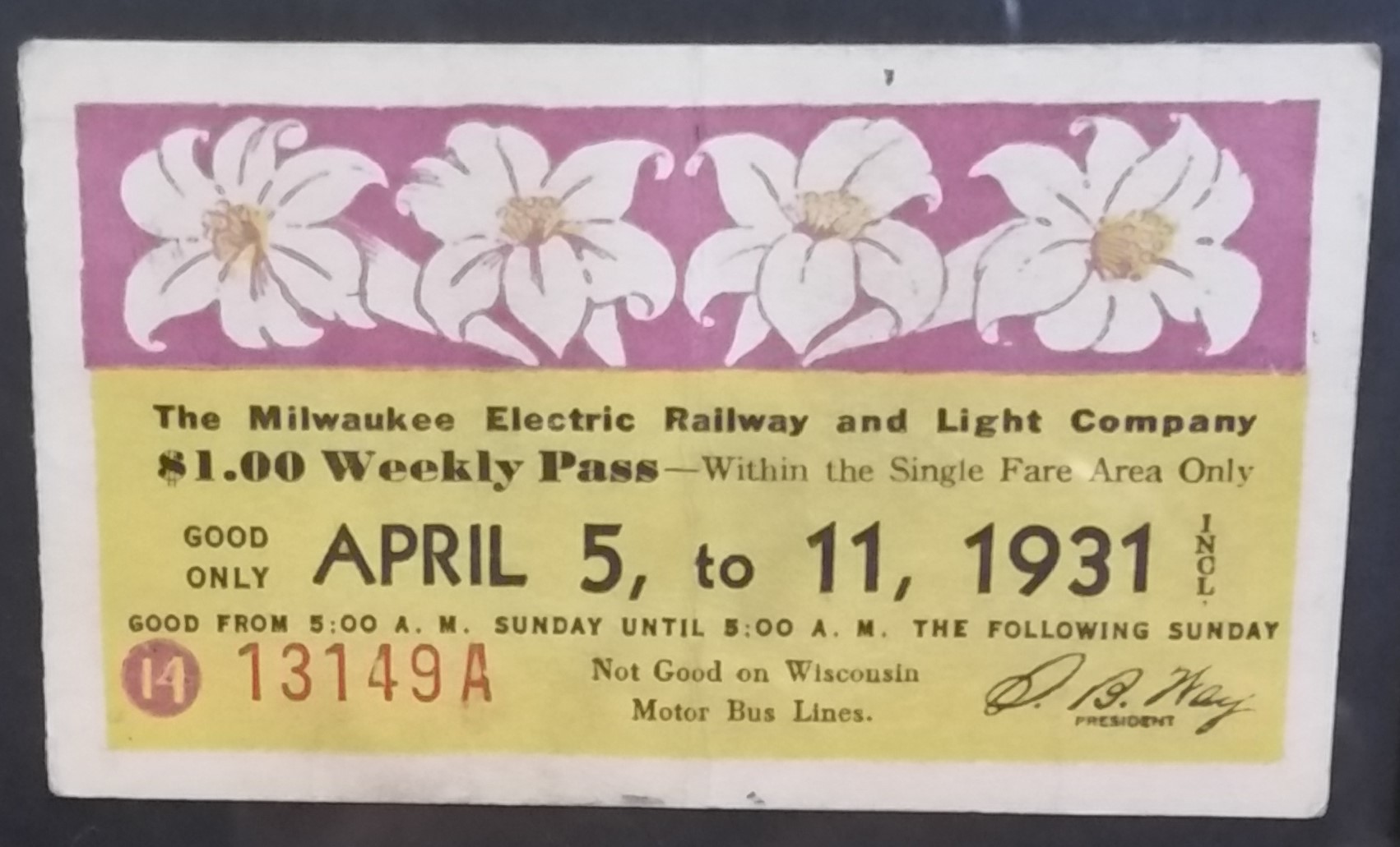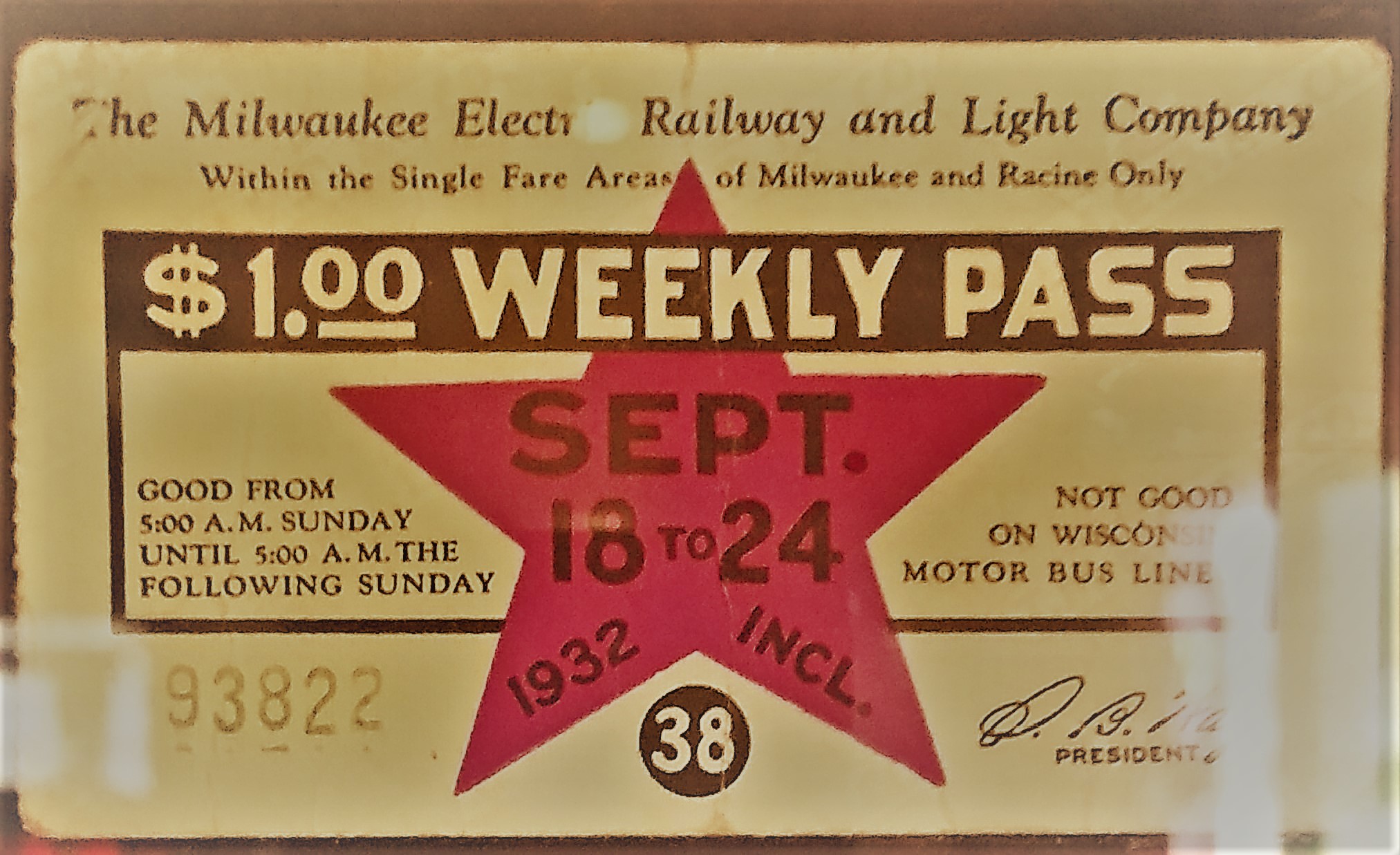 A series of Weekly passes have been found and are on display at The Crazy Train Saloon. A $1.00 Weekly Pass is equivalent to $34.32 in 2024 inflation adjusted dollars. Photos of tickets by R.E. Gariepy, Sr.: