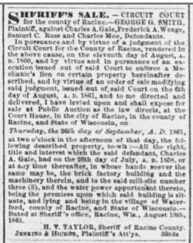 Gale Foreclosure-1861-13-1861 Published April 12, 2019 at 377 × 476 in The Mills of Waterford – Site No. 3 ← Previous Next → Like Loading...