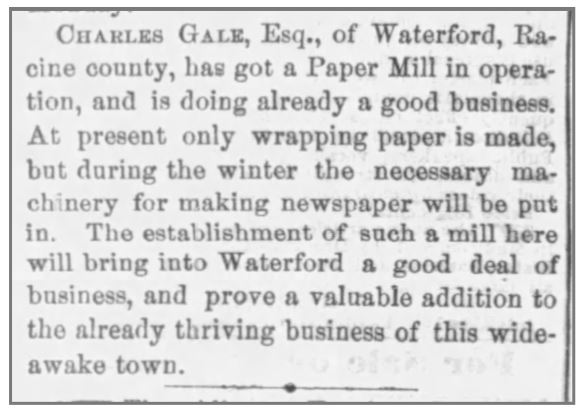 Gale Mill opening WI St Journ 1859-12-22 Published April 12, 2019 at 582 × 410 in The Mills of Waterford – Site No. 3 ← Previous Next → Like Loading...