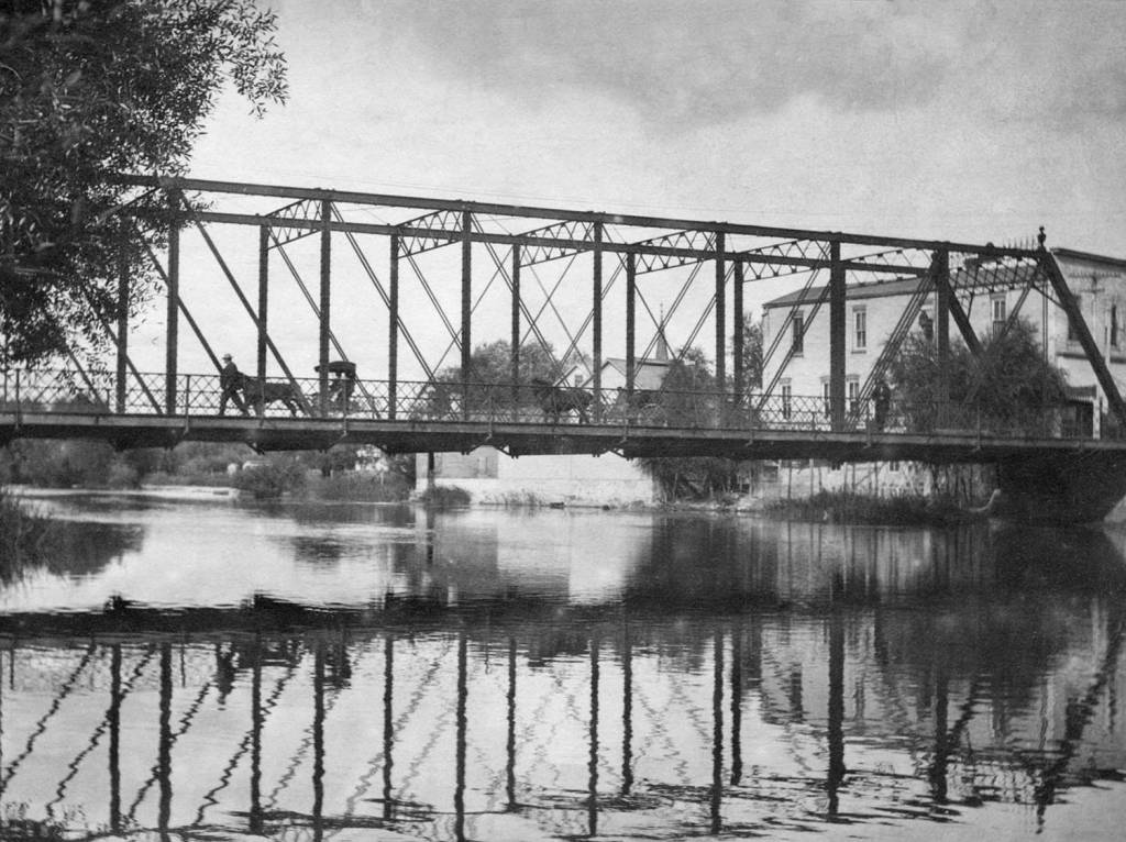 The village quickly gathered up some of the remnants of the bridge and built a temporary structure large enough to accommodate one lane of traffic. Repairs were made which kept the bridge in operation until the substantial trestle-style Iron Bridge was constructed in 1889. It would last until 1938 when a new concrete bridge was built.