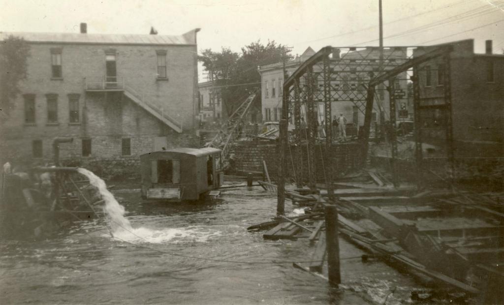 Damming a river does not always create a permanent structure. With the variation in winter and spring weather activity, flooding occasionally occurred causing water damage in the village, mostly on the east side. The first documented flood was detailed in the Racine Advocate April 11, 1866.