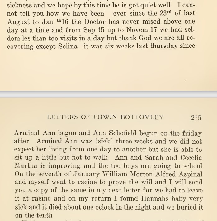 - An English Settler in Pioneer Wisconsin – The Letters of Edwin Bottomley, 1842- 1850, Wisconsin Historical Society, Collections XXV, 1918.