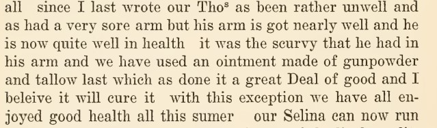 Medications, usually home-made, were minimally effective and science had not advanced to the point of proper diagnosis and efficient treatment. Examples from The Letters of Edwin Bottomley7 written in 1847 follows:
