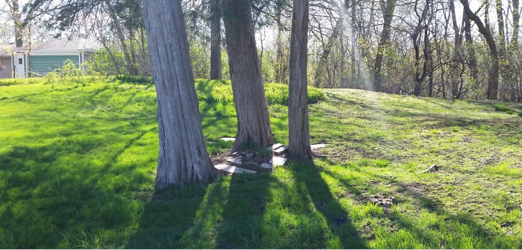 Due to its deteriorated condition in the late 1800’s, many Old Settler’s graves were being reinterred to surrounding cemeteries including, Oakwood, Rochester, St. Thomas and, St. Peter’s. Neglect degraded the sacred site over time but vandals seemed to finish the job. Before recent restoration efforts, passersby would hardly recognize the site as a burial ground unless they happen to see the broken gravestones lying flat under a few cedar trees or see the lone gravestone buried in the wild raspberry bushes on the south west end, reading– Eber Sawyer, Dec. 12, 1854.