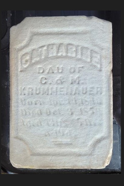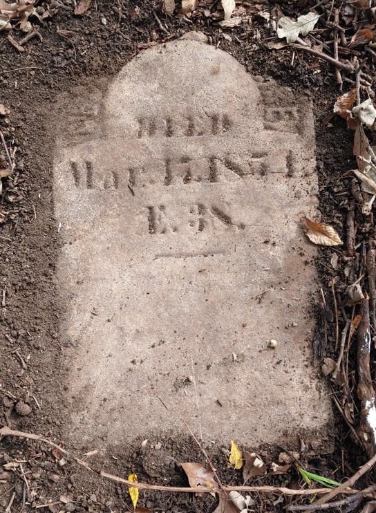 This gravestone was the only one still standing as the restoration work began. It is in excellent condition and can be found on the southwest part of the cemetery.