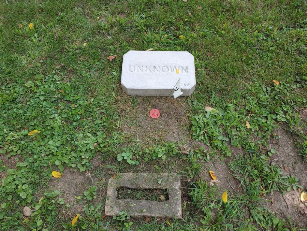 It was decided to mark the burials with cast concrete markers labeled as “UNKNOWN” until positive correlation could be made with fallen tombstones. Volunteers cast the stones and installed them in appropriately-identified rows. Flat stones were chosen to facilitate maintenance by the Village Parks and Facilities Department.